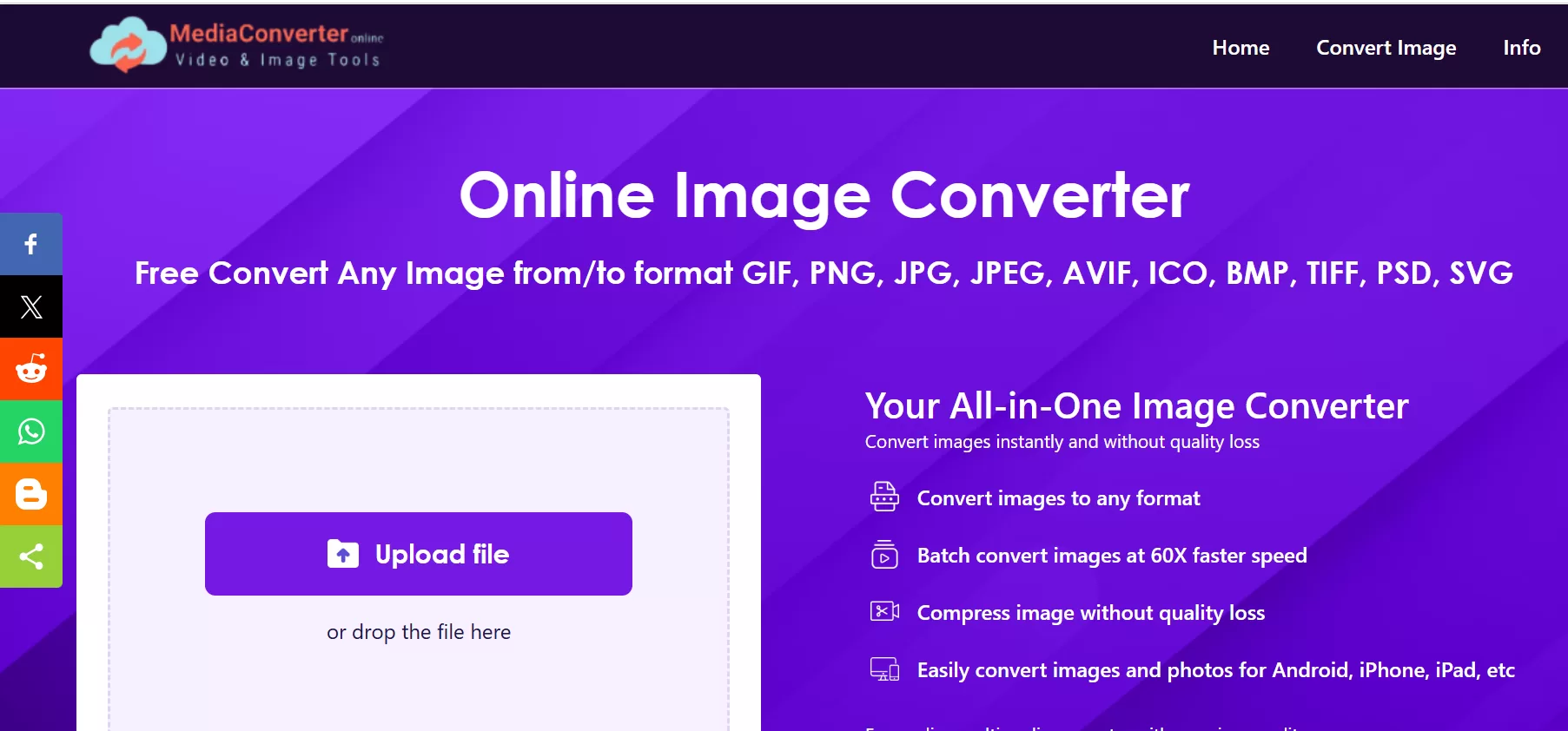 MediaConverter’s Image Converter is a web tool that lets you upload an image and convert it to a different format, like JPG, PNG, WEBP, GIF, BMP, or TIFF. You use it in your browser, so it works on Windows, Mac, Linux, and even mobile. No signup needed. No downloads. Just upload, pick a format, convert, and download.